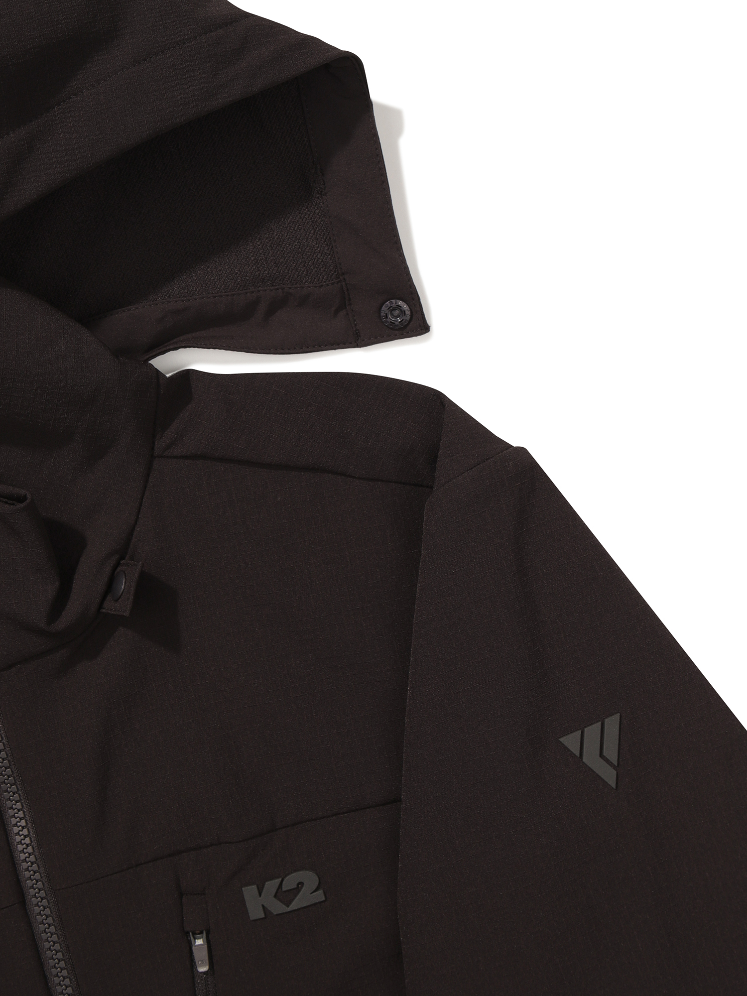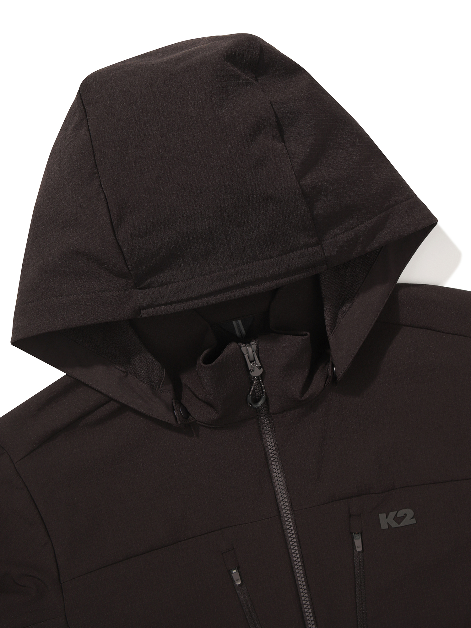 KTR 감성의 ROCK 소프트쉘 자켓 / 립스탑 우븐 스트레치 소재를 사용하여 네추럴한 외관에 기존 아웃도어 자켓과는 다른 실루엣으로 새로운 룩을 제안함 / 후드 탈부착