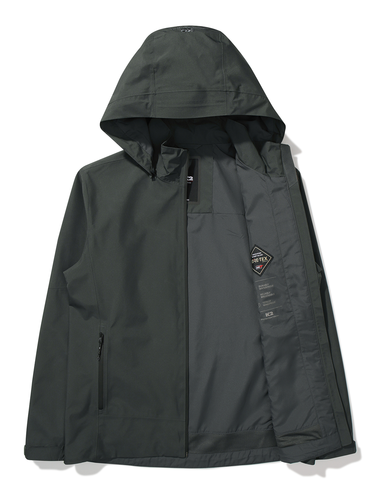 써라운드 기본형 고어텍스 안감형 자켓으로 전체 심실링처리가 되어 있어 완벽한 방수 방풍 기능 / 심플한 디자인으로 다양한 TPO  착장 제안하며 입체 절개 패턴을 통해 활동성 강화 및 부분 안감 메쉬를 적용하여 투습성 상승 / 후드 탈부착 디자인