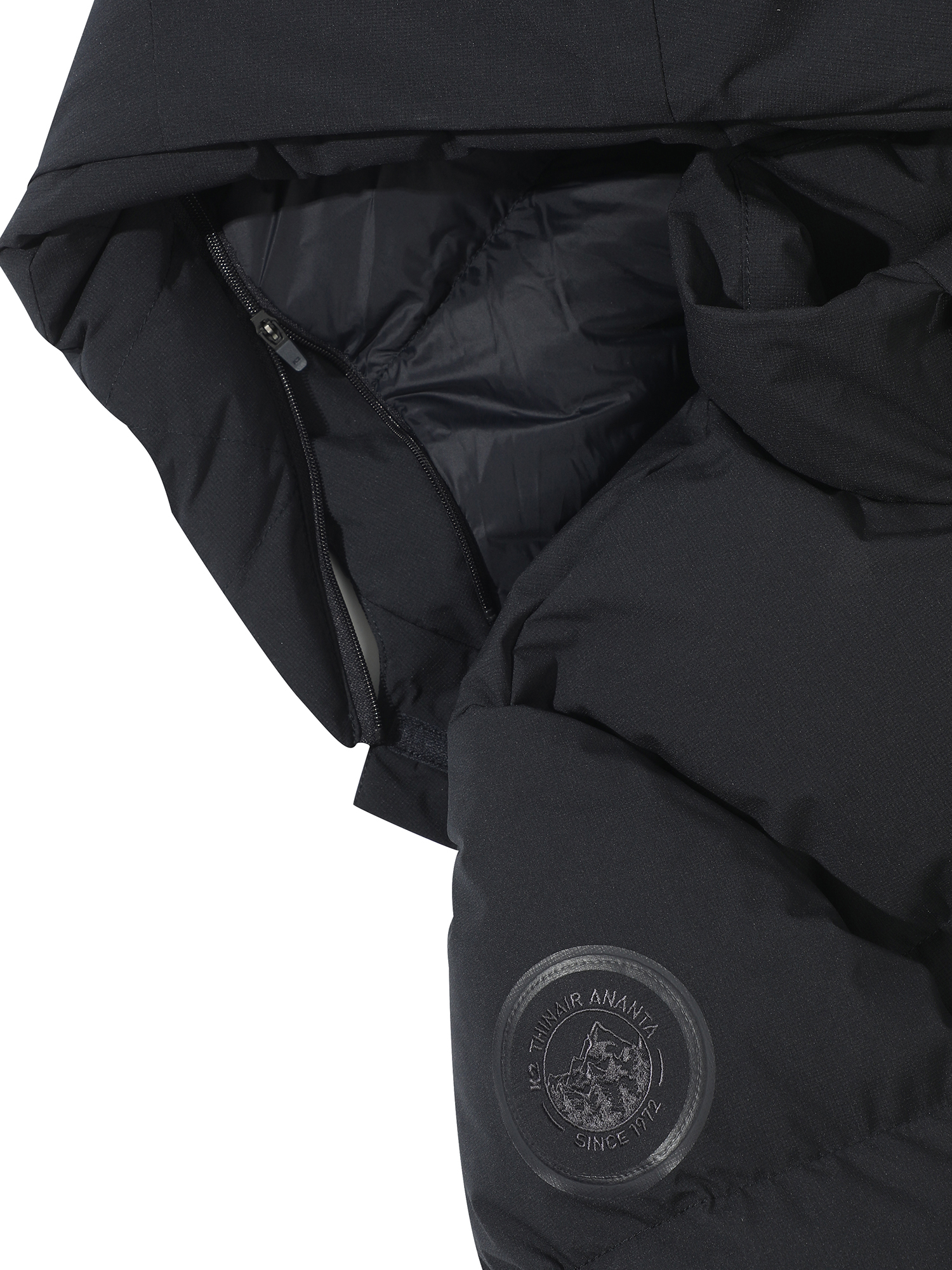 씬에어의 완결판, 'ANANTA' 시리즈의 두번째 시즌 제품 / 구스 충전량 증량과 씬다운 이중 격실 구조화로 더욱 강력해진 보온성 제공 / 마이크로 사이즈의 립스탑 2L 소재로 내구성, 생활방수 기능 제공 / 소매 이너 커프스와 허리, 후드 스트링 디테일로 방풍성 강화 / 안면의 외풍을 막아주는 후드 DOWN BUFF 디자인 설계 / 새로운 헤리티지 와펜 적용 / 퀼팅 디자인으로 변화 / 역대 씬에어 시리즈중 가장 헤비한 다운 충전으로 강력한 보온성 제공 / 리싸이클 씬다운 60G(등판) + 구스 80:20 650FP(100호 기준 : 300G)