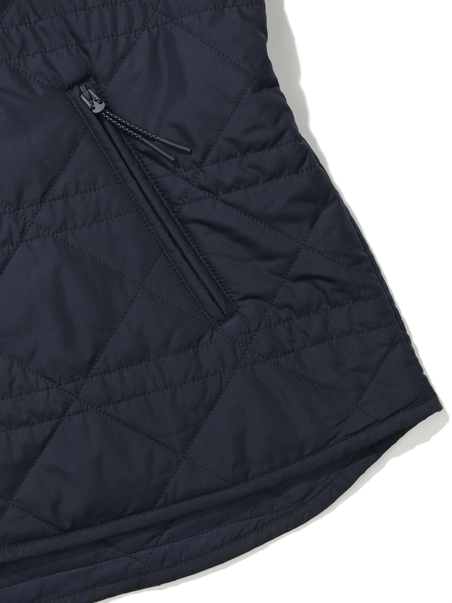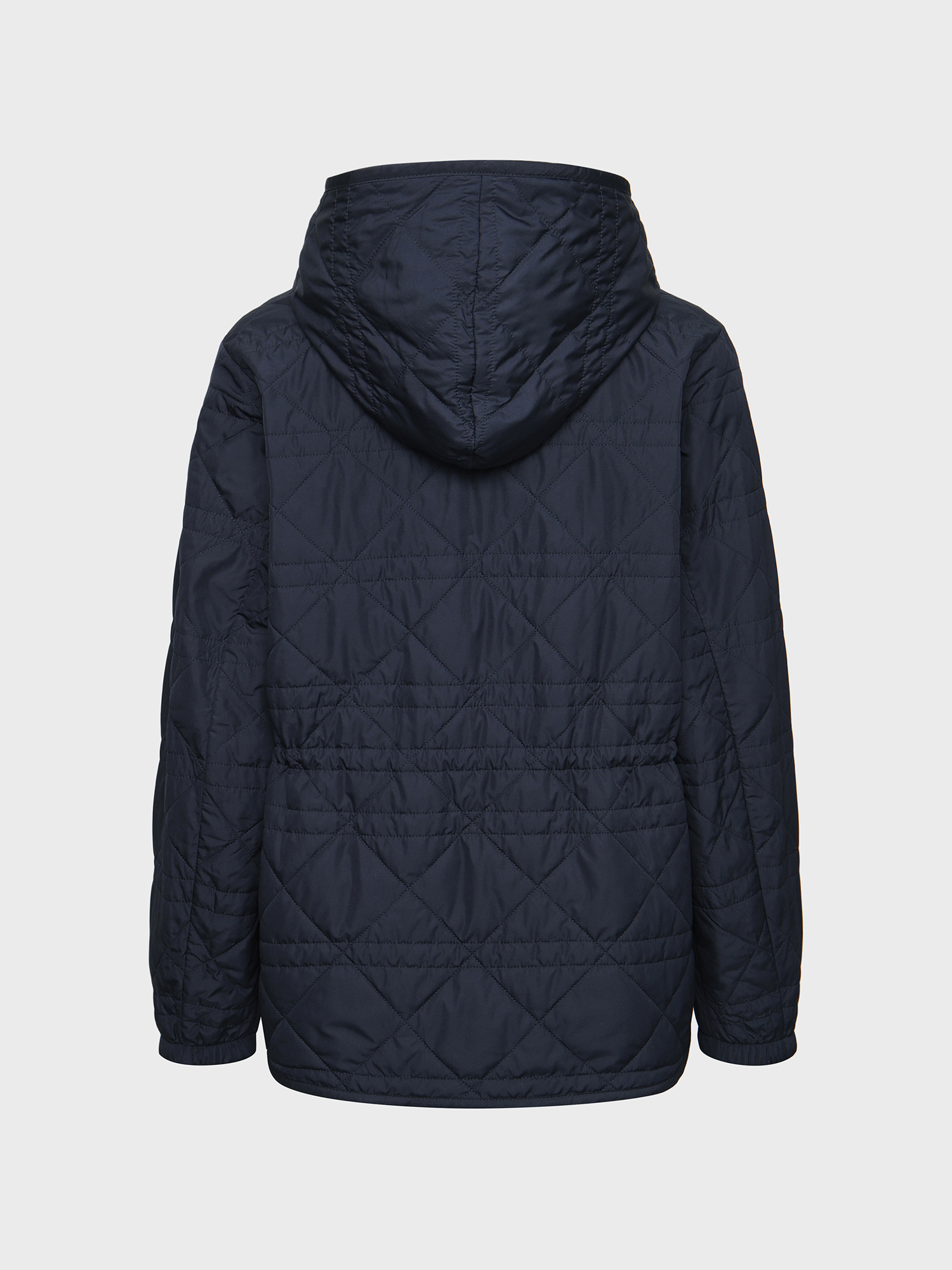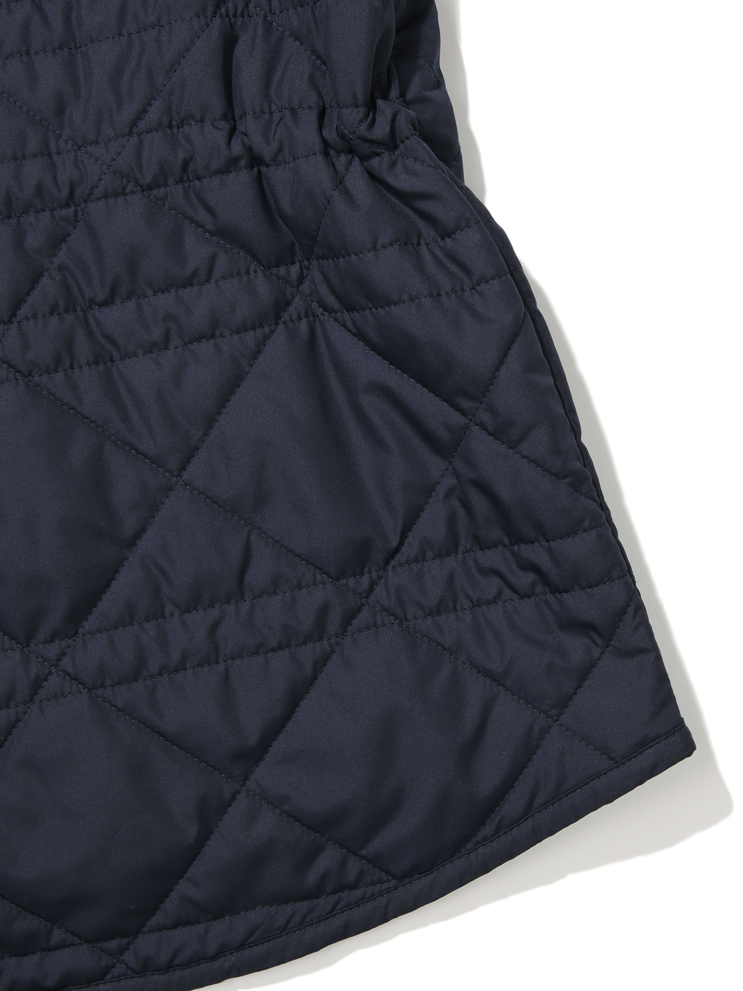 여성 퀼팅 자켓 / 여성스러운 실루엣의 경량 패딩 자켓 / 소프트한 터치의 하이필라 소재로 부드러운 터치감 제공 / 허리 스트링 디테일과 후드 일체형 디자인으로 다양한 아웃핏 연출 가능 / 힙을 덮어주는 중힙 기장감으로 범용적 착장 용이