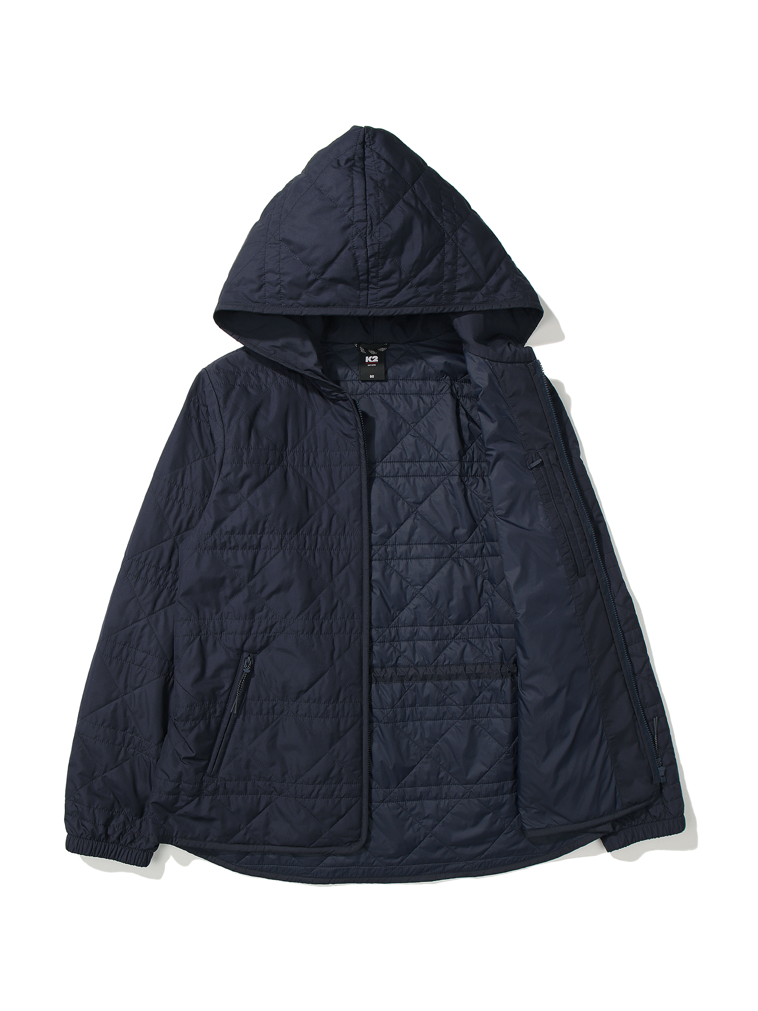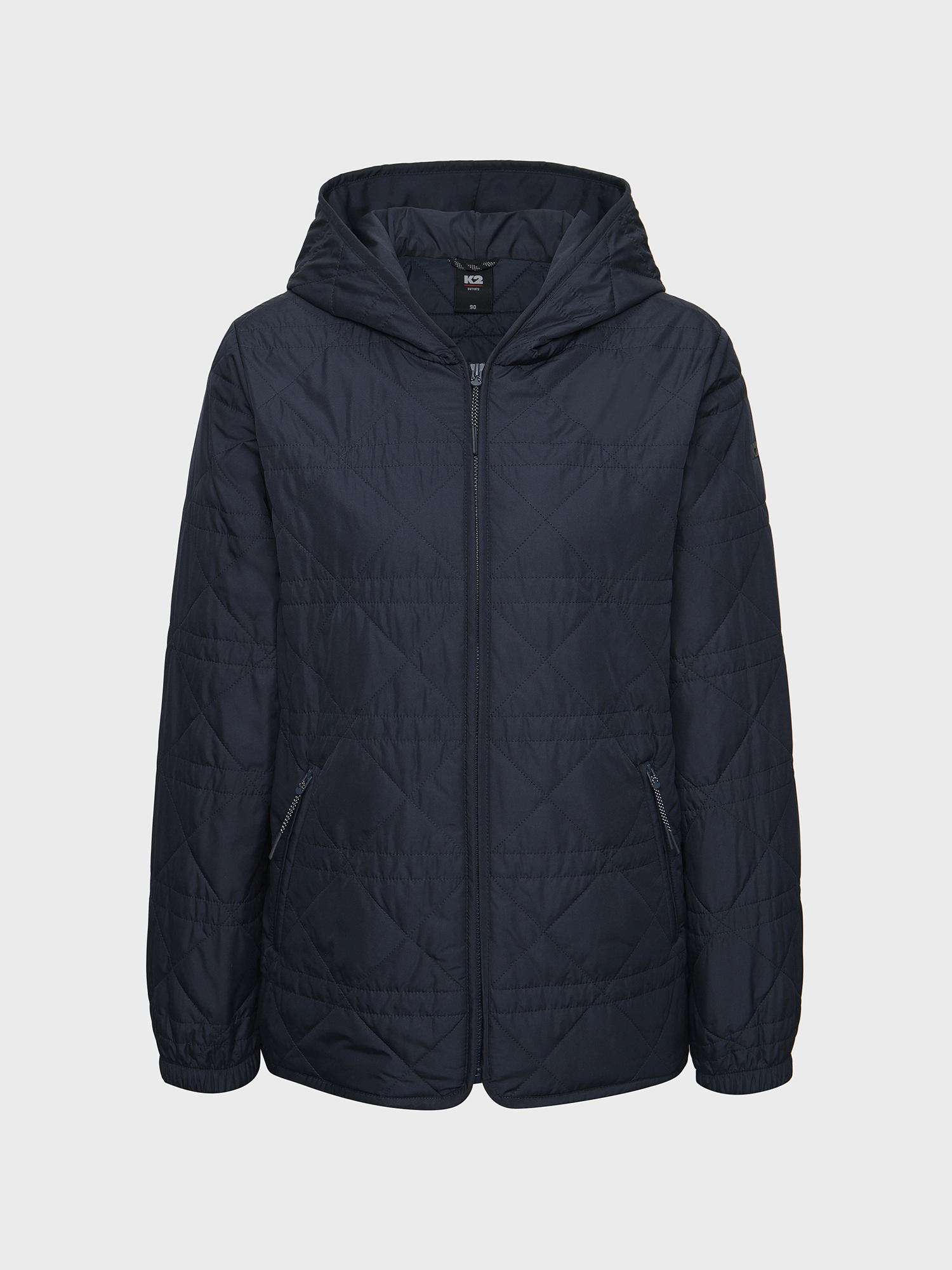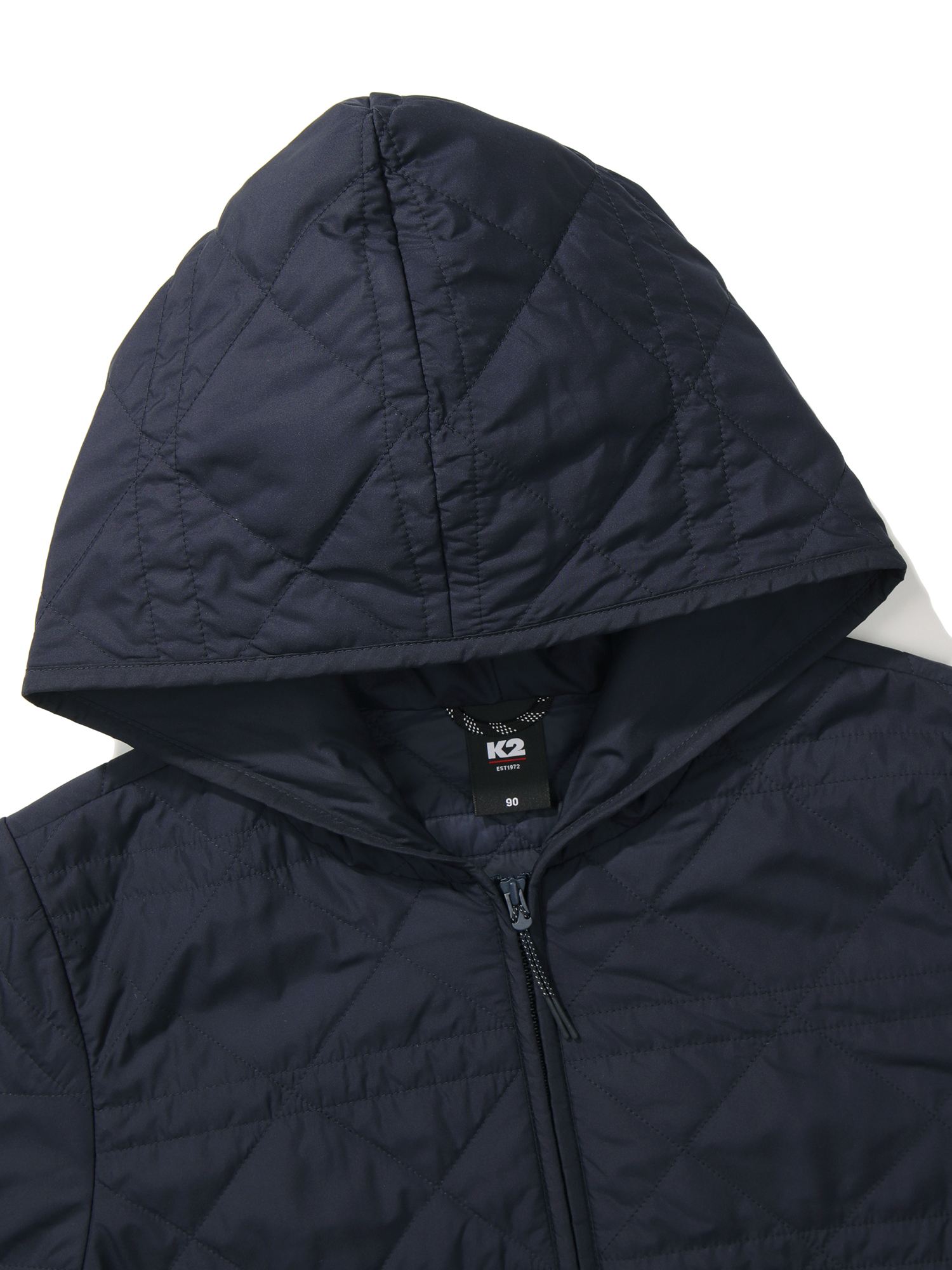 여성 퀼팅 자켓 / 여성스러운 실루엣의 경량 패딩 자켓 / 소프트한 터치의 하이필라 소재로 부드러운 터치감 제공 / 허리 스트링 디테일과 후드 일체형 디자인으로 다양한 아웃핏 연출 가능 / 힙을 덮어주는 중힙 기장감으로 범용적 착장 용이