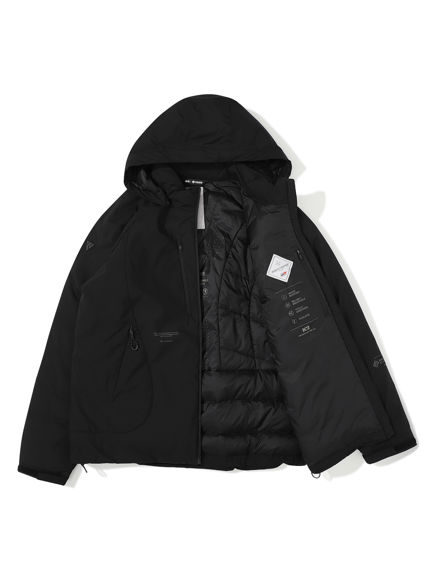 쾌적함에 포커싱한 신개념 구스 하이브리드 다운 / K2와 GORE社가 공동 개발한 매케니컬 고어 윈드스토퍼 소재를 사용하고, 등판에 CLO VIVO INSULATION을 사용하여 보온성은 유지하고 몸의 땀을 배출하여 최적의 쾌적함을 제공 /유니크하고 역동적인 절개라인을 접목한 스타일리쉬 디자인 / 그래핀 안감 사용하여 보온성과 정전기 방지 효과 제공 / 후드 탈부착