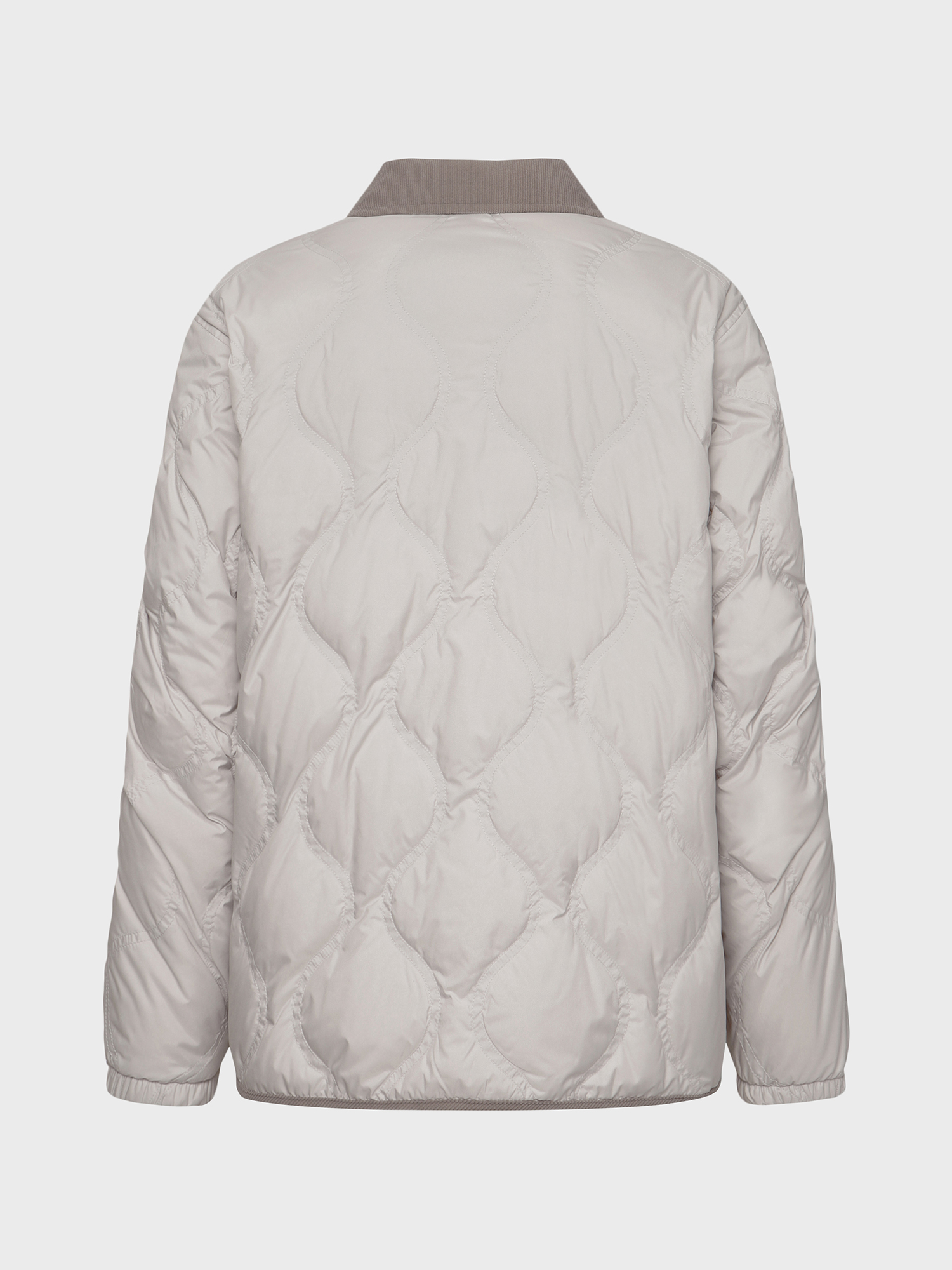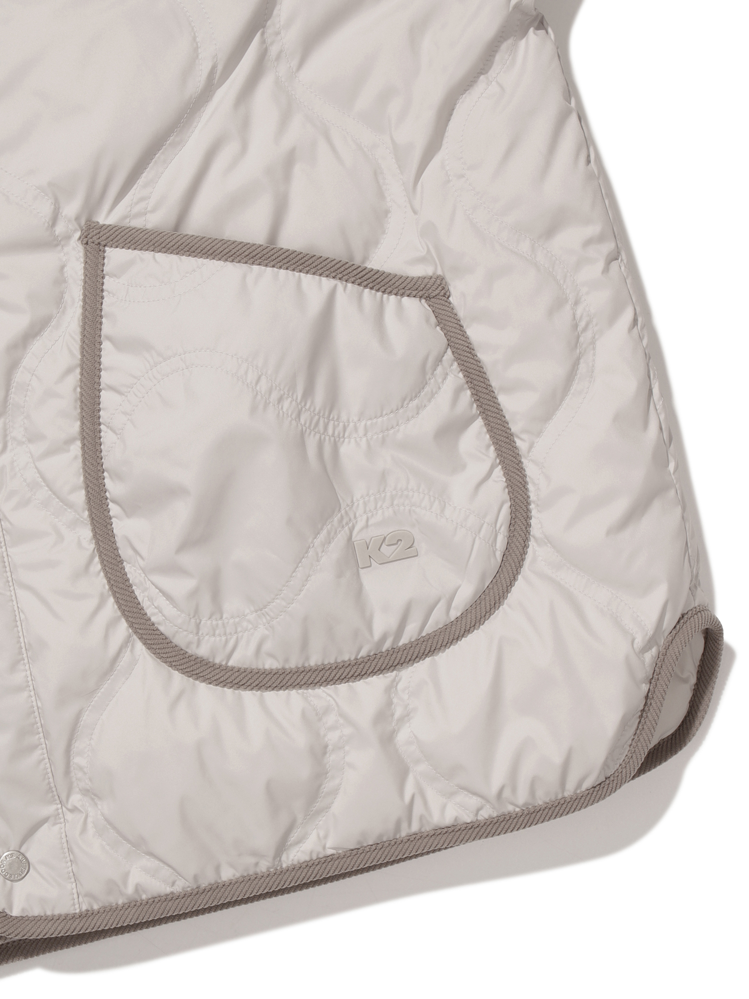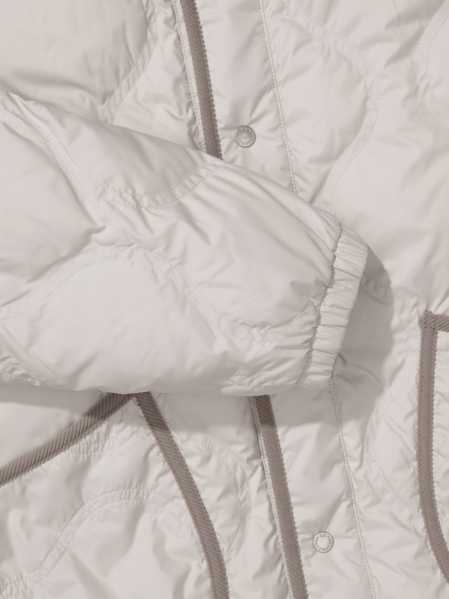 스냅 여밈 디테일로 자연스럽게 착장 할 수 있는 간절기 다운 자켓