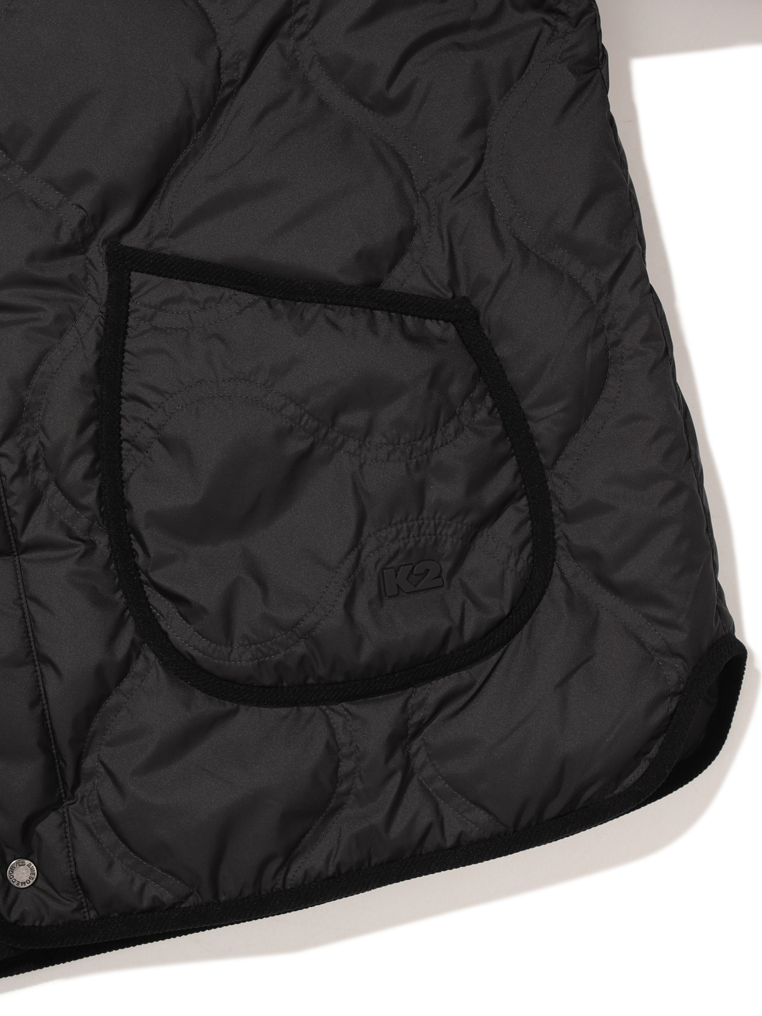 스냅 여밈 디테일로 자연스럽게 착장 할 수 있는 간절기 다운 자켓